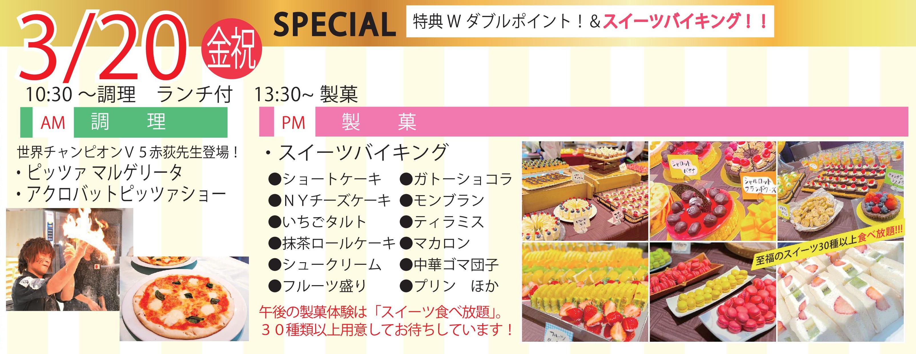 【3/20(金祝)WポイントSPECIALオープンキャンパス】世界チャンピオンのピッツァショー&スイーツバイキング!