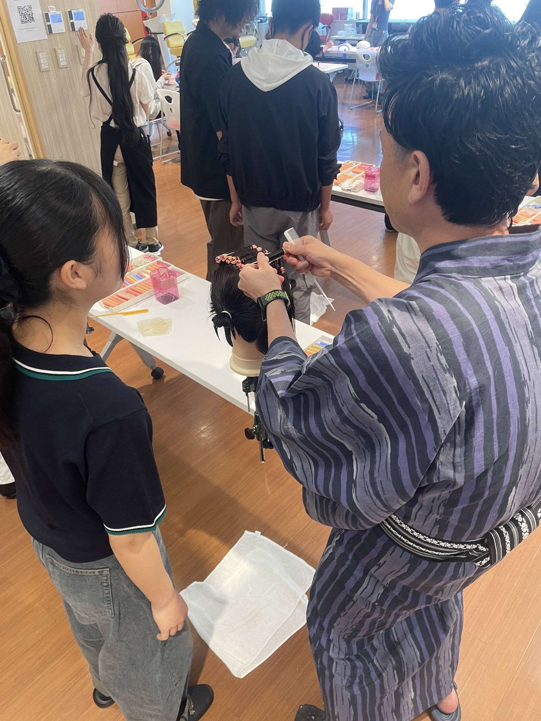 毎回いろいろな体験を通じて、理美容技術が身につくことで大好評の体験授業!